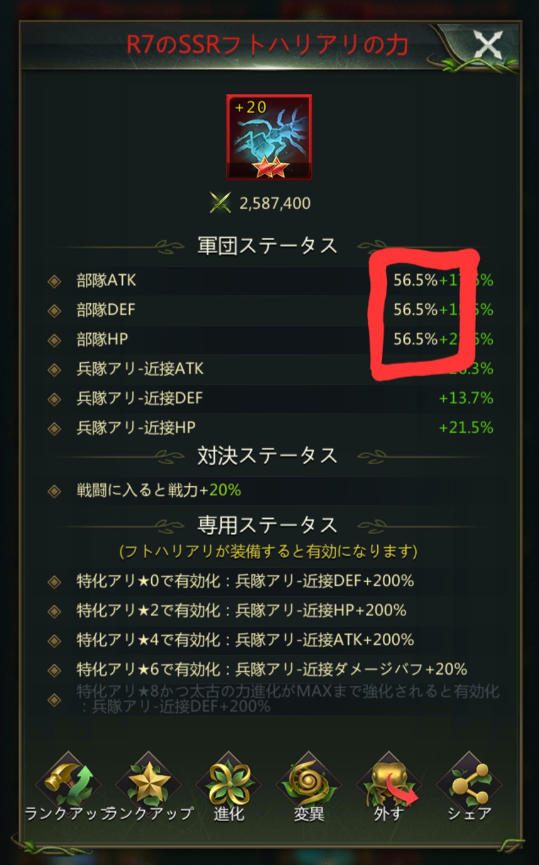 あと★を1つ上げれば「部隊ATK+100%」が有効になるんです。
