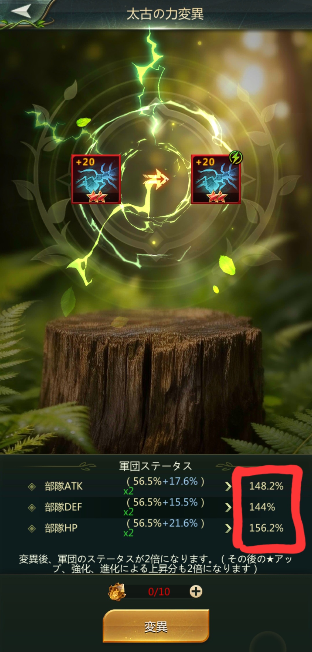 「兵隊アリの力」でもレベルアップ・ランクアップすりゃバフがつきます!