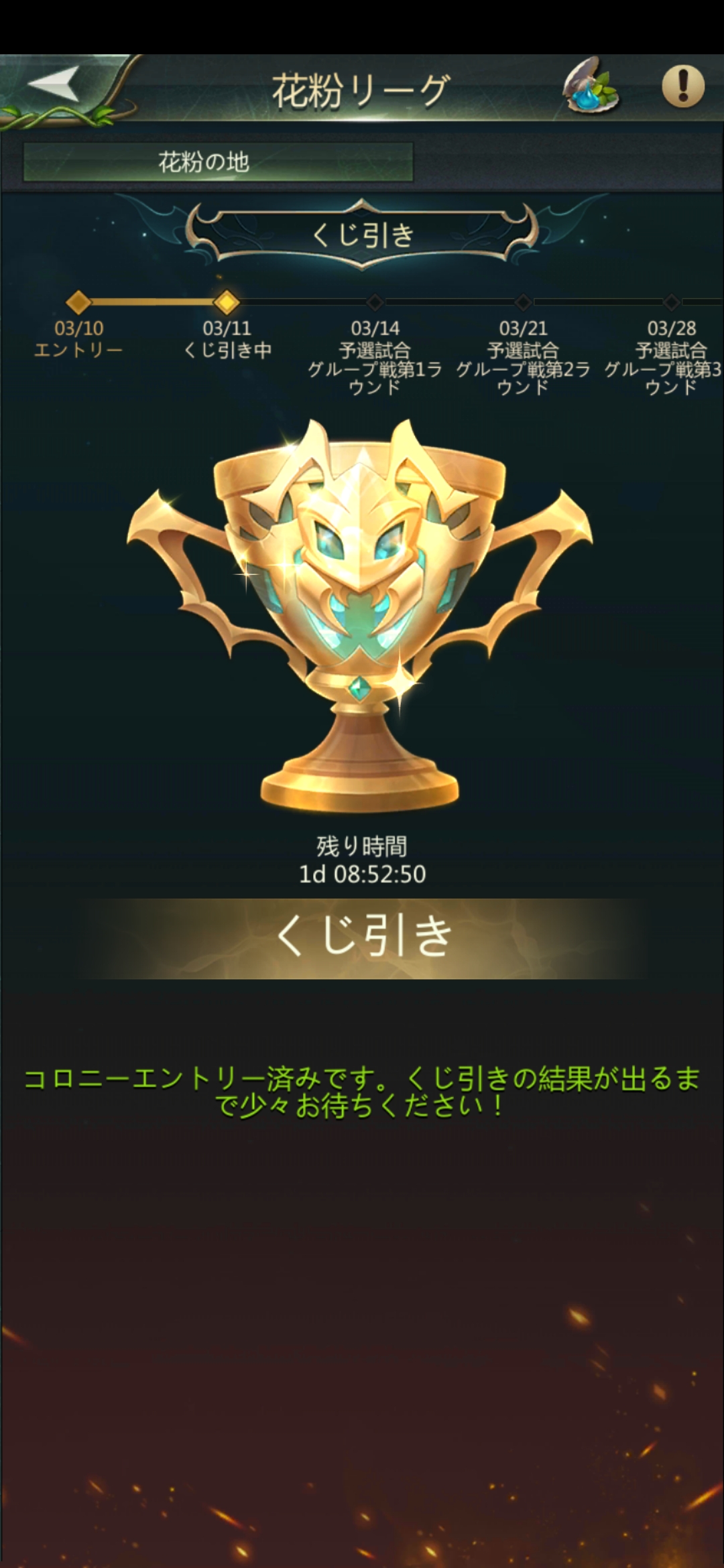 他のコロニーに移動して通常花粉などに参加してしまうと、次の花粉リーグ戦には参加できない。